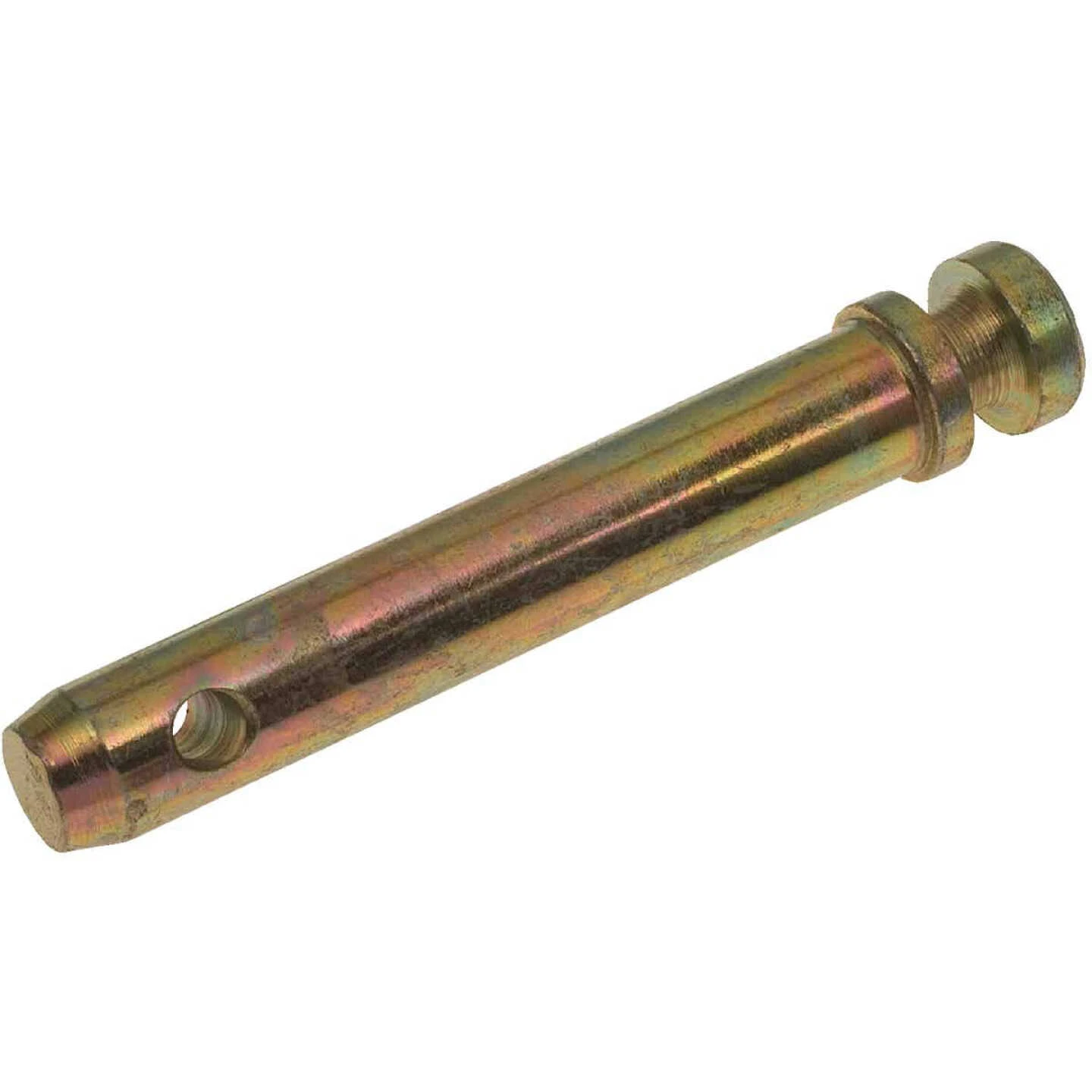 Top link pin in sizes and styles for Category 0 through 3 tractors. Yellow zinc dichromate-plated. Dimensions equal pin diameter x usable length x overall length.